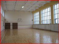 В спортзале есть волейбольная сетка, баскетбольные кольца, что позволяет играть в волейбол и баскетбол.