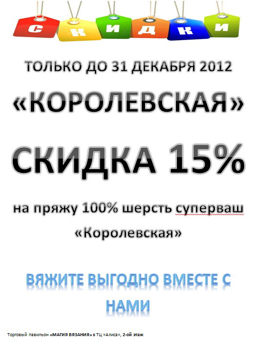 С 1 декабря по 31 декабря 2012 года павильон "Магия вязания" в Кобрине проводит акцию под названием "Королевская Скидка".