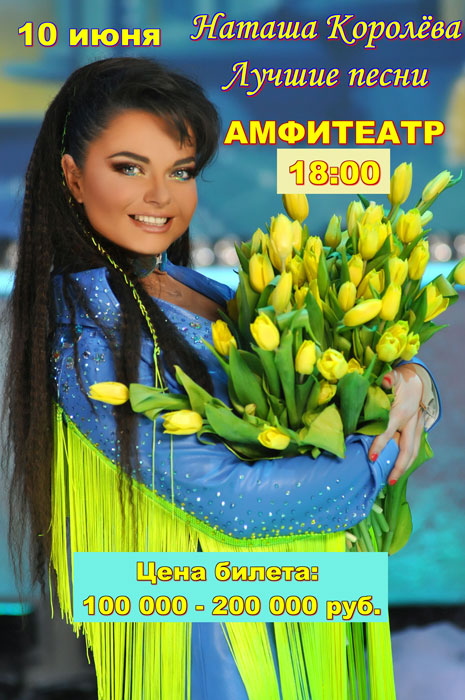 10 июня 2012 года в 18:00 в парке имени А.В. Суворова города Кобрина состоится концерт из заслуженной артистки Российской Федерации Наташи Королевой.